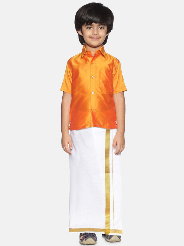 Sethukrishna Boys Orange & White Solid Shirt and Veshti Set - 2-3Y