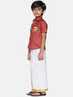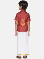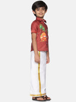 Sethukrishna Boys Printed Traditional Shirt With Adjustable Velcro Dhoti Set
