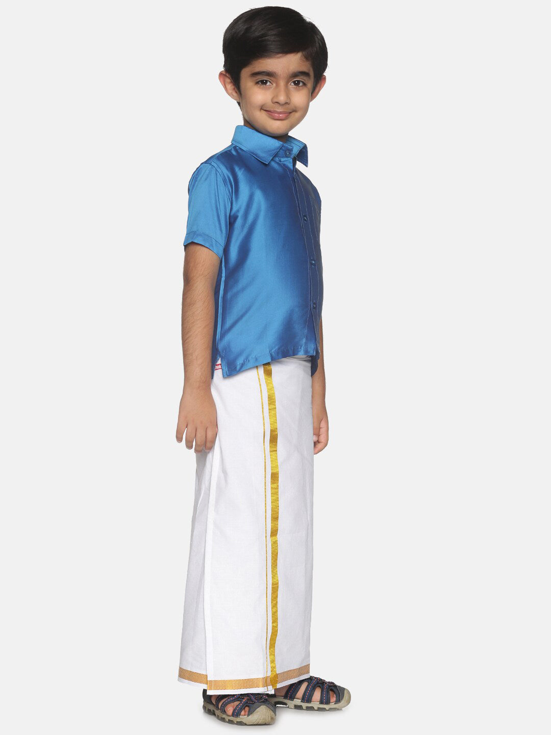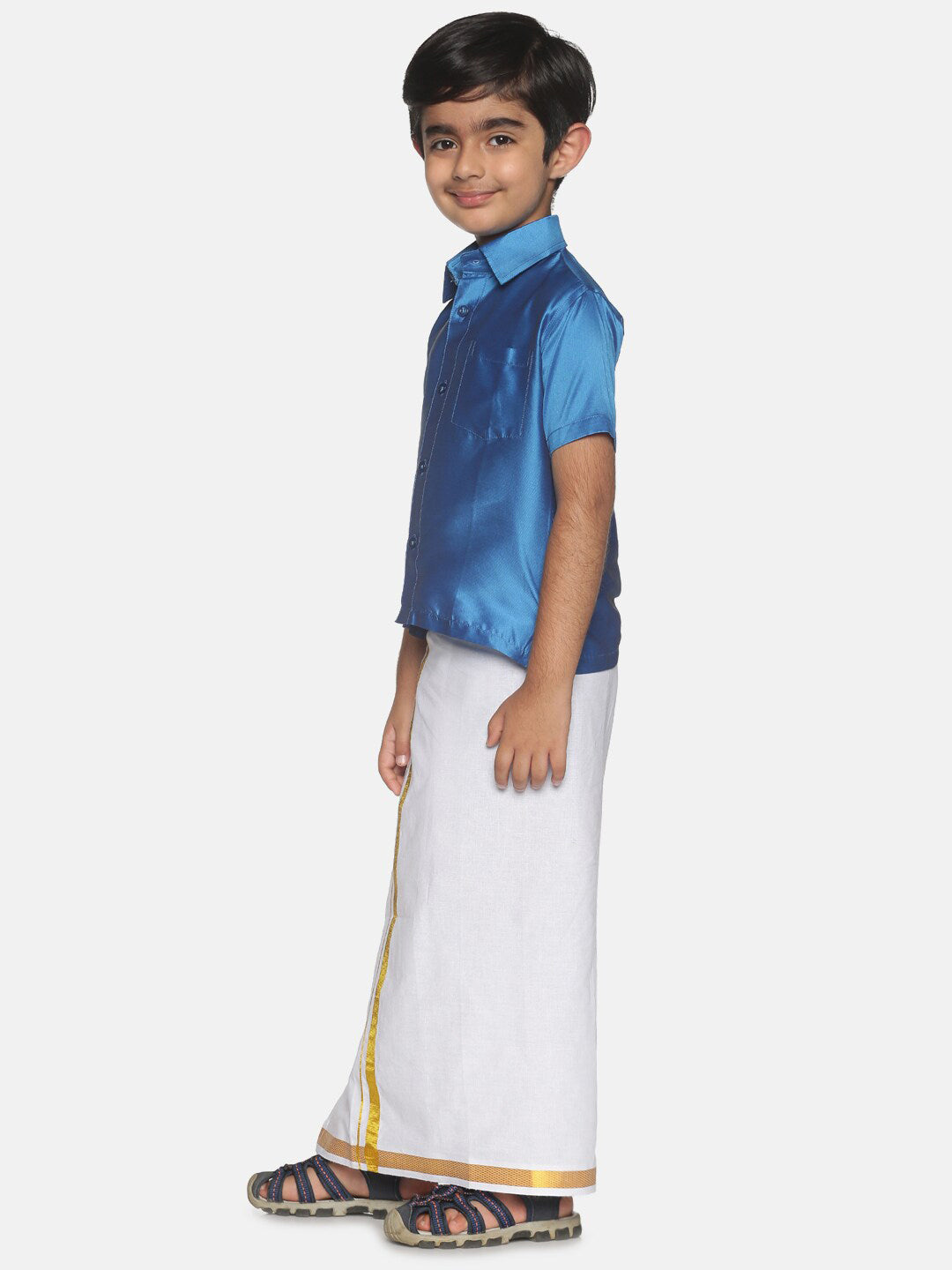 Blue solid Shirt ,has a shirt collar, short sleeves