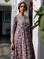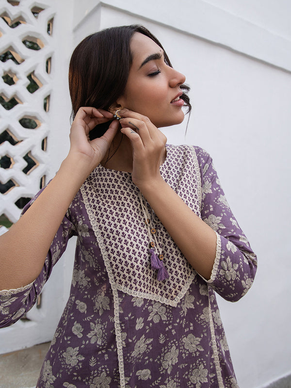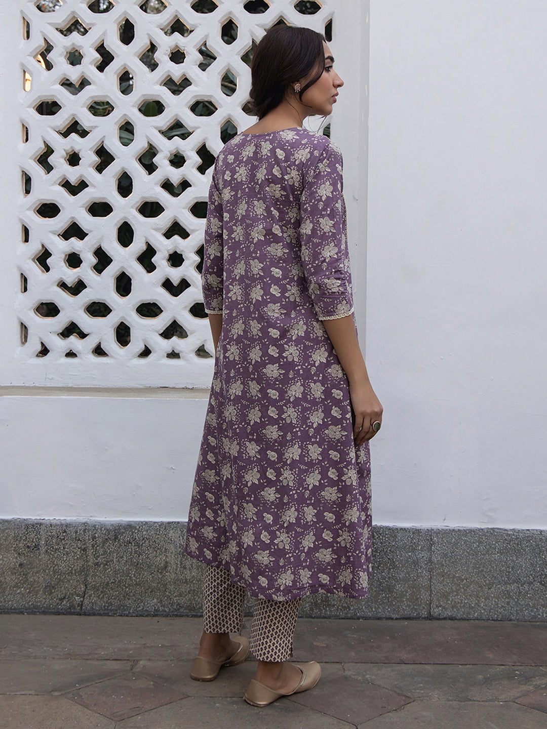 Janasya Purple Cotton Floral Kurta Set - Distacart