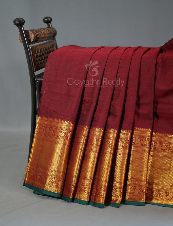SAREE : Kalanetha maroon colour saree combination with zari Kanchi style borders..