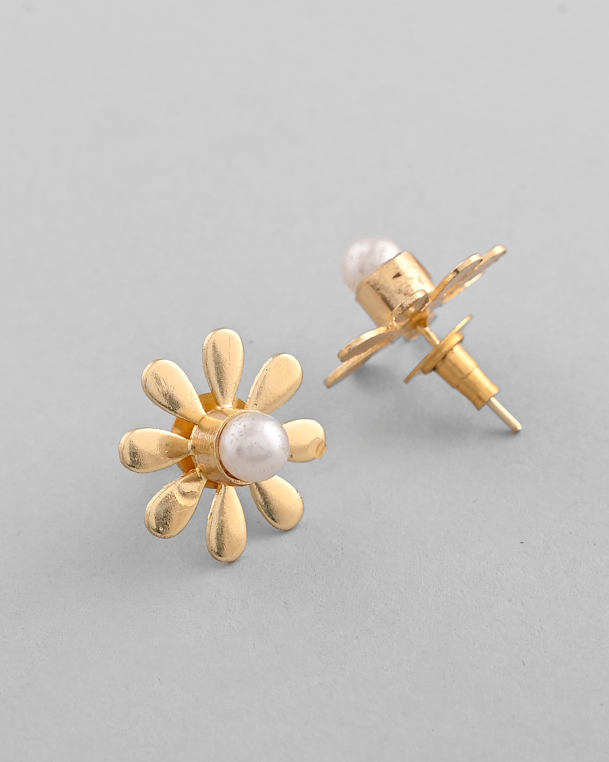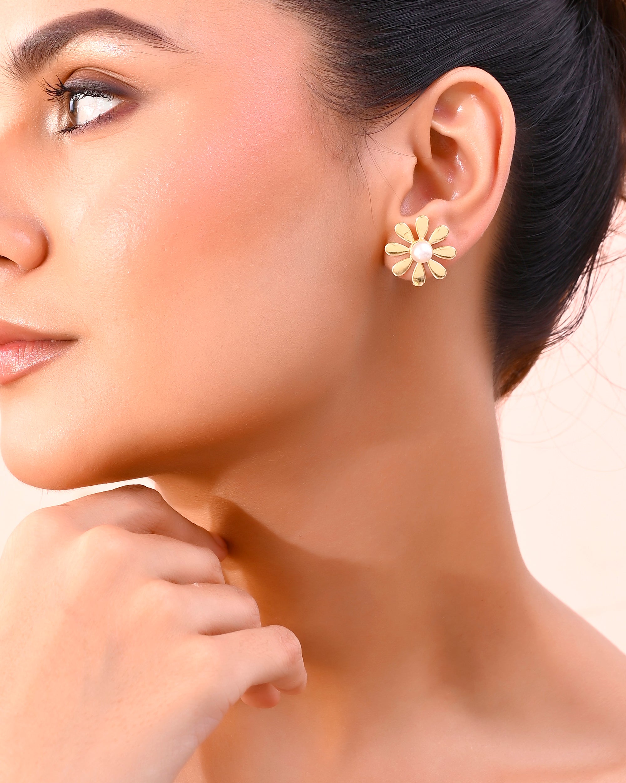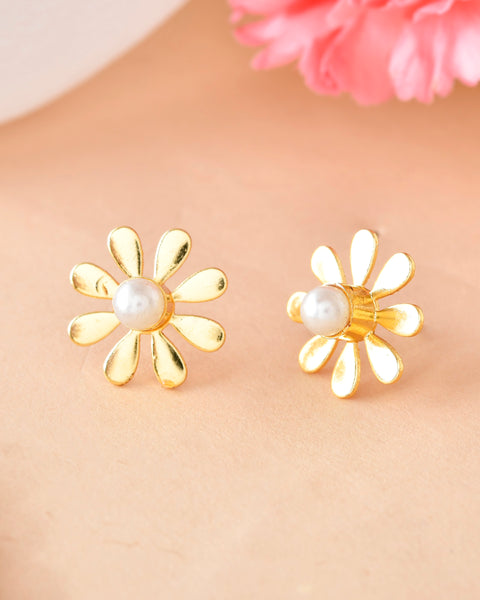 VOJ Gold-Polished Flower Shaped Pearl Stud Earrings - Distacart