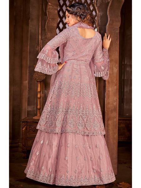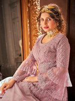 Lilac Heavy Embroidered Gharara Suit features a butterfly net kameez, net bottom with net dupatta. embroidery is completed with Zari, Dori, and Stone. this Style is made in India and checked by hand to ensure high quality.
