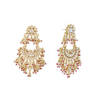 Nuyug 22K Gold Plated Pearl Empress Chandbali EarringsAbout the product:22 k Gold-toned, white pearls and red beads crescent shaped chandbalis, gol...