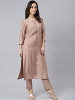 Janasya Women's Dusty Rose Viscose Blend Embroidered Kurta With Pant - Distacart