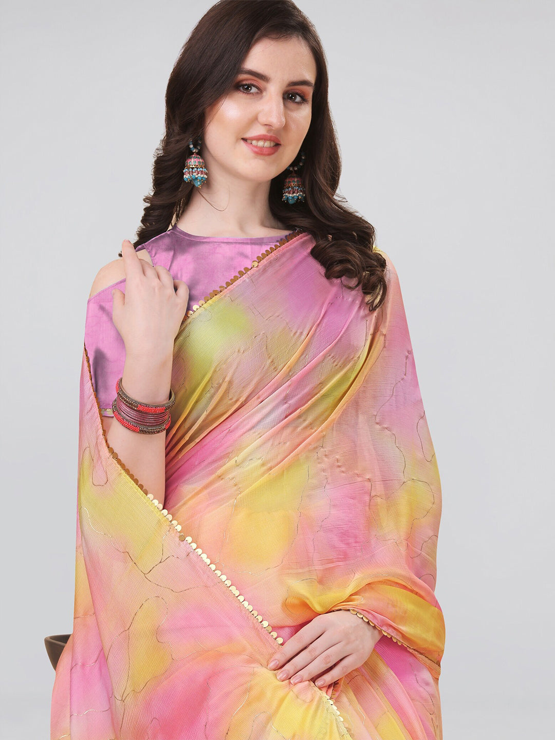 Kalini Yellow & Pink Tie and Dye Sequinned Saree - Distacart