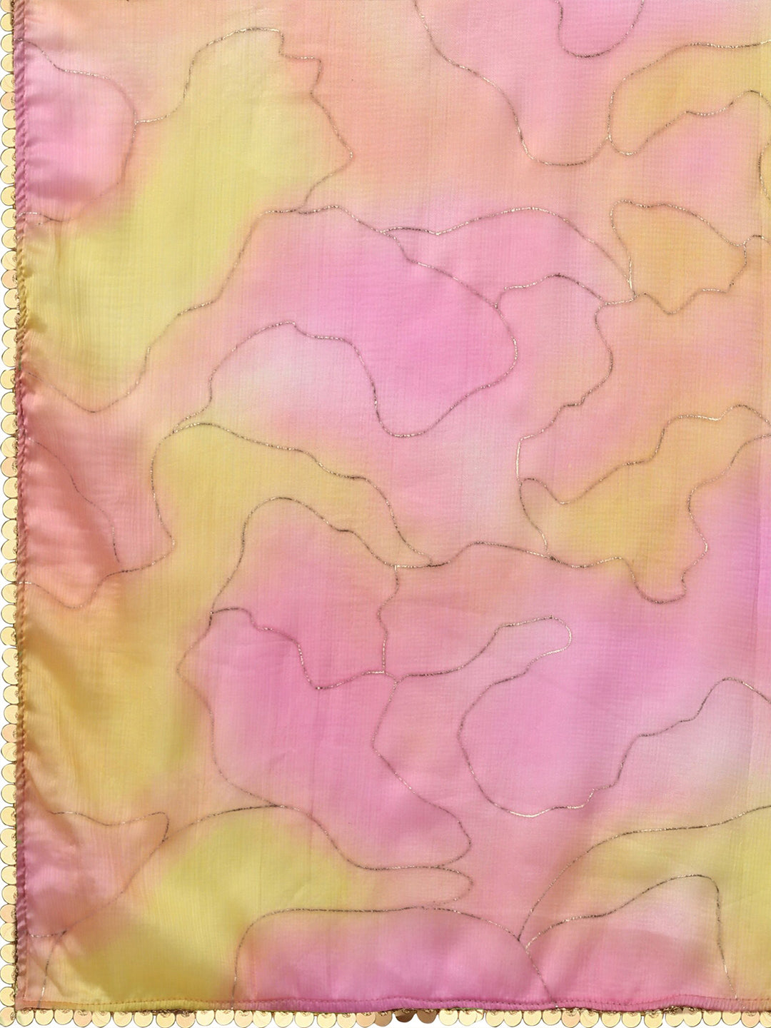 Kalini Yellow & Pink Tie and Dye Sequinned Saree