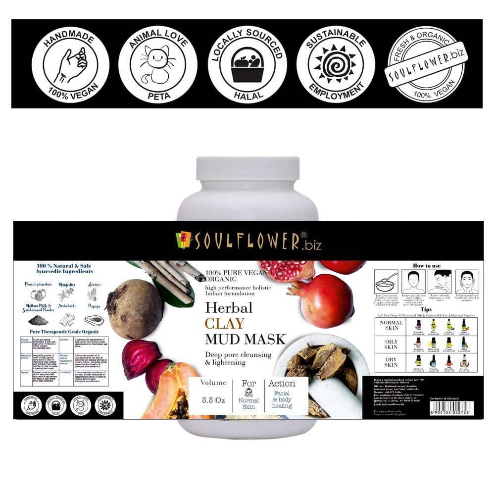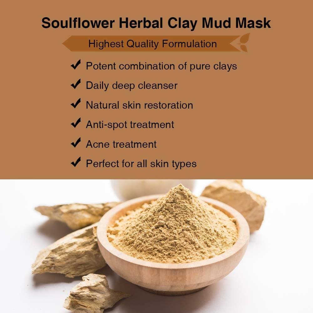100% PURE, VEGAN, ORGANIC FORMULATION: Soulflower Herbal Clay Facial & Body Healing Mask is a pure therapeutic grade traditional Indian remedy and extracted from ethical resources.