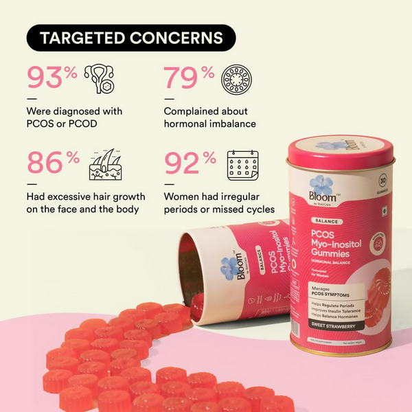 Bloom PCOS Myo-Inositol GummiesAbout the Product: To target androgen overgrowth in women with PCOS, this gummy is formulated with Myo-Inositol, a p...