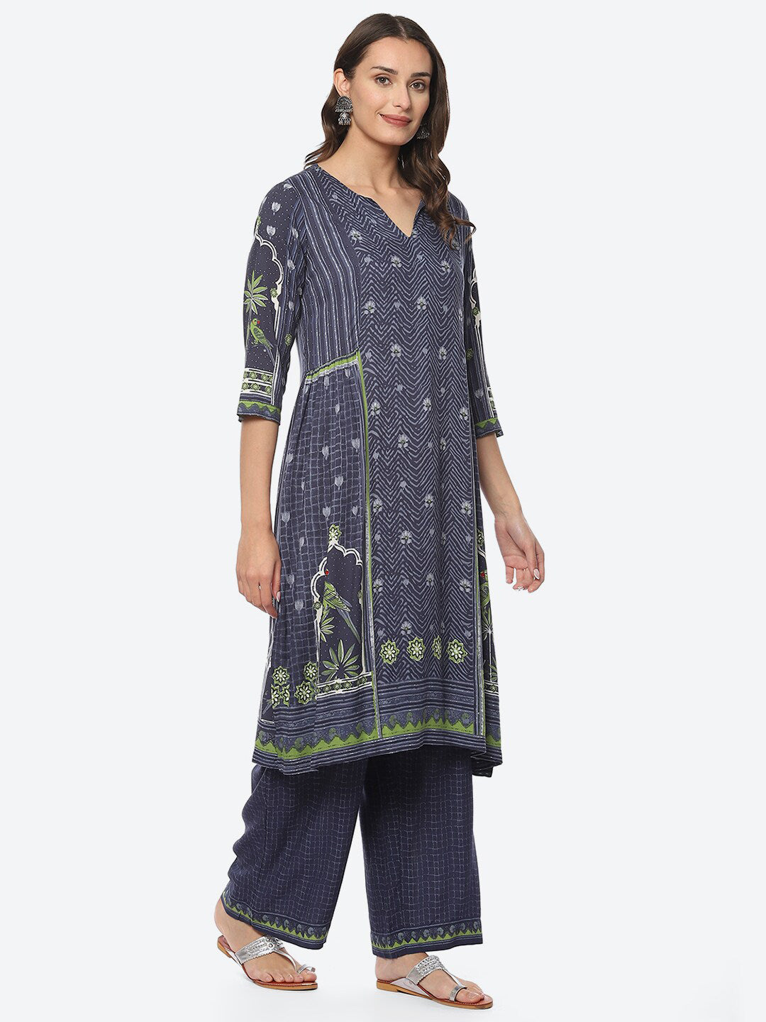 Biba Ethnic Motifs Printed Pleated Kurta with Palazzos & Dupatta Product Details Blue printed Kurta with Palazzos with dupatta Kurta desi...