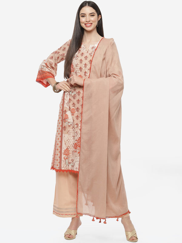 Biba Women Brown Ethnic Motifs Embroidered Kurta with Palazzos & With Dupatta