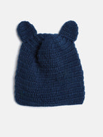 Chutput Kids Woollen Hand Knitted Bear Detail Cap - Blue