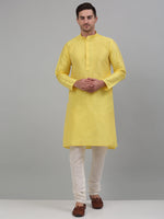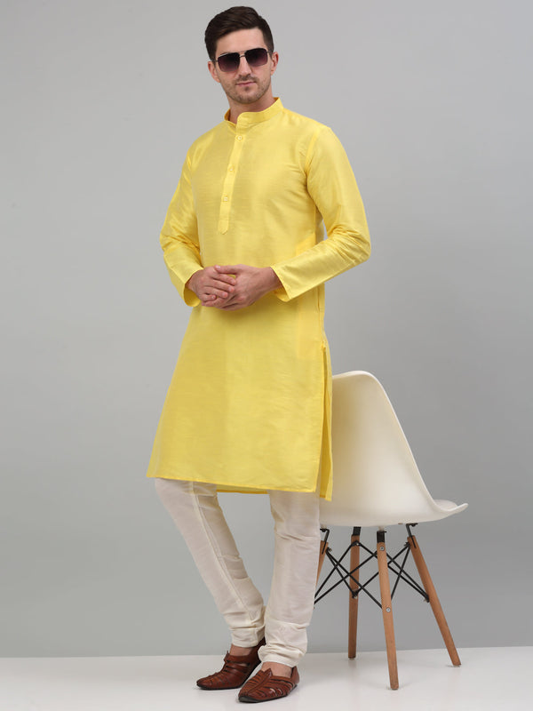 Jompers Men's Lemon Yellow Dupion Silk Kurta with Churidar - Distacart