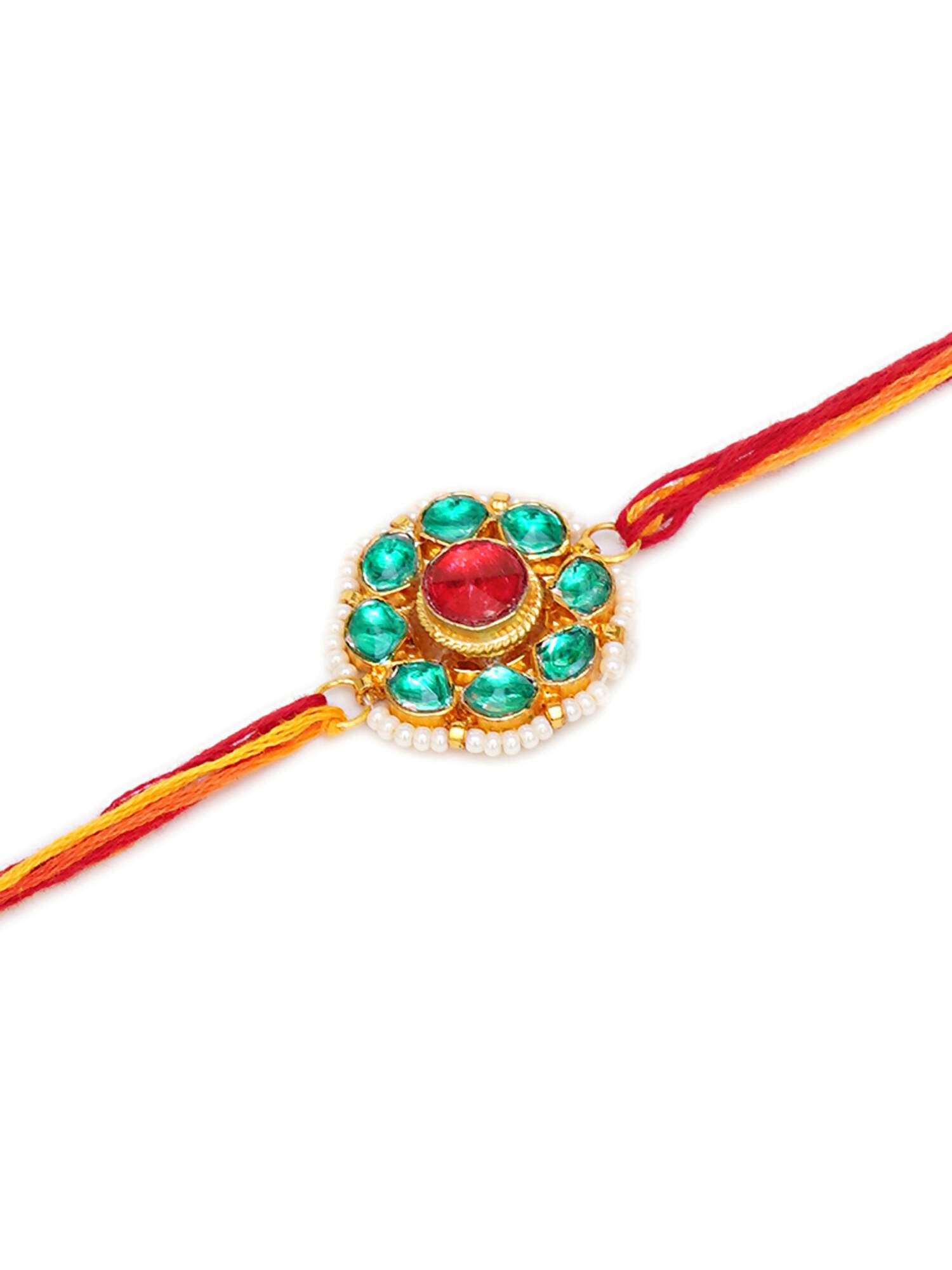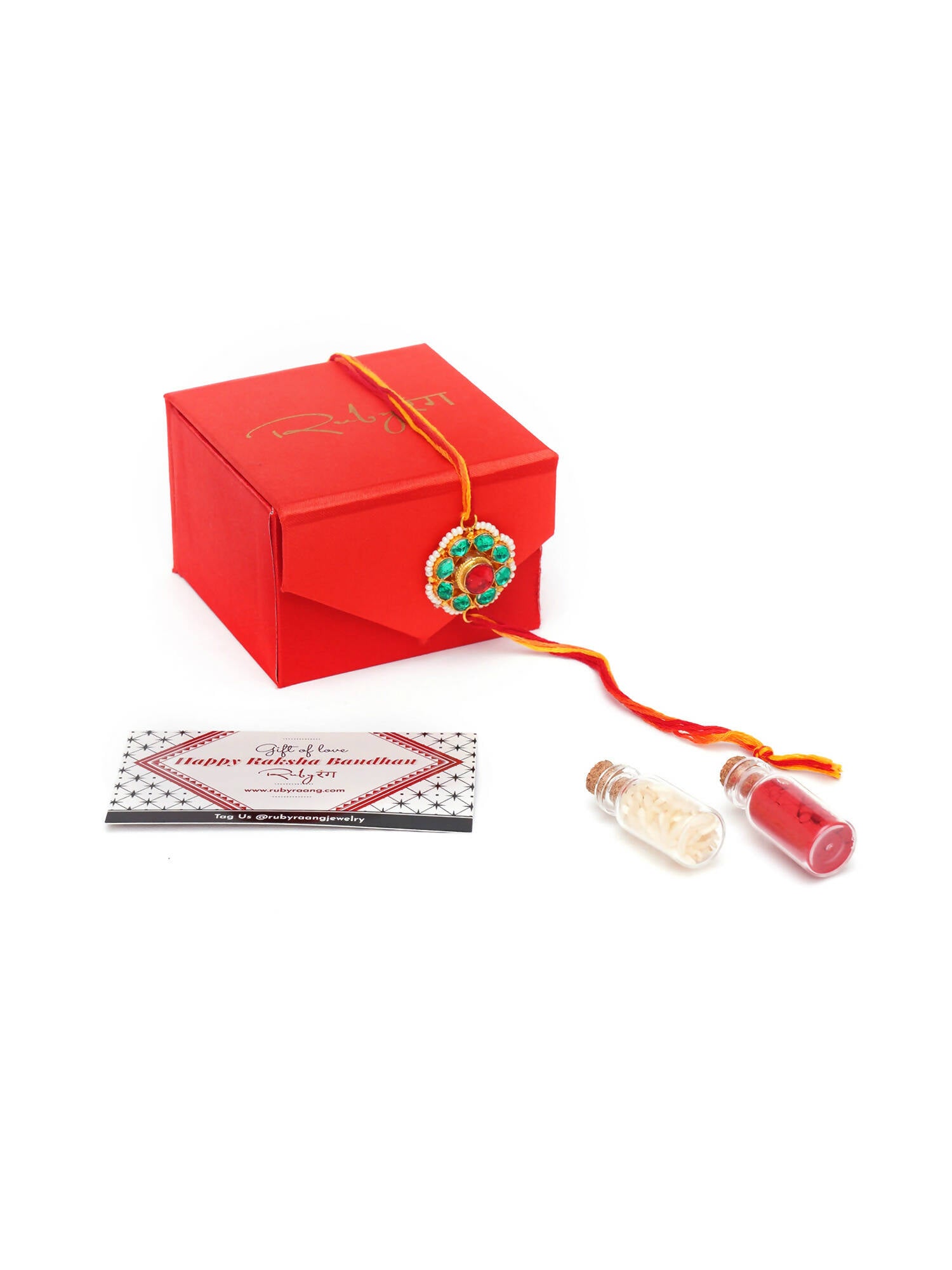 Design kundan Rakhi - Ruby RaangAbout the product: shop from our colorful range of designer rakhis this season, and celebrate the bond of love and ...