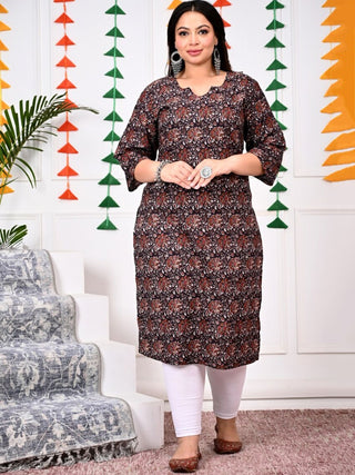 Swasti Plus Size Floral Printed Round Neck Straight Kurta