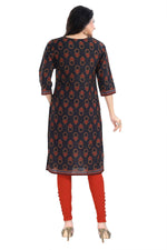 Snehal Creations Elegant Black Designer Digital Print Cotton Slub Fabric Long Kurti Tunic