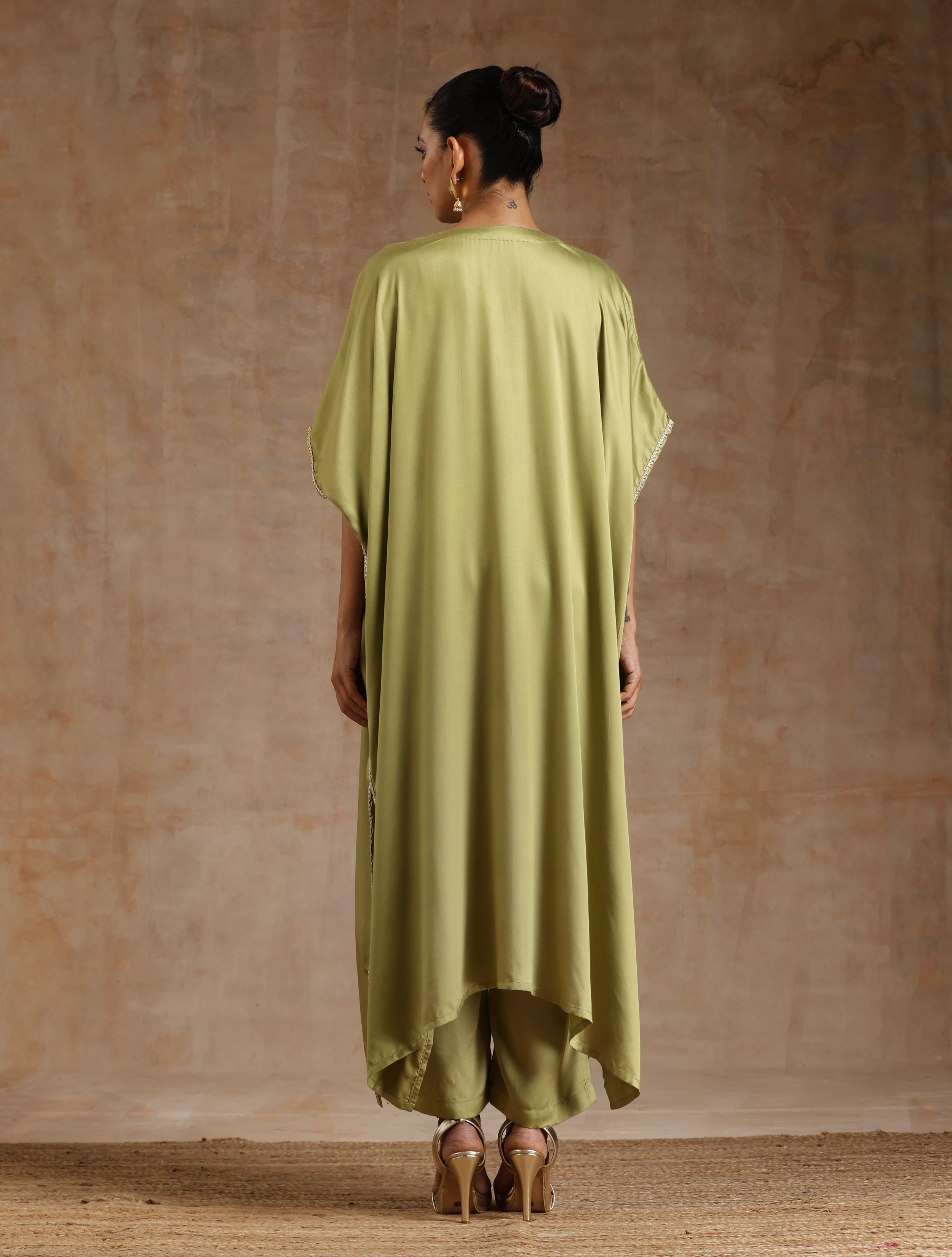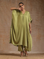 trueBrowns Light Green Modal Satin Kaftan Kurta Set