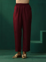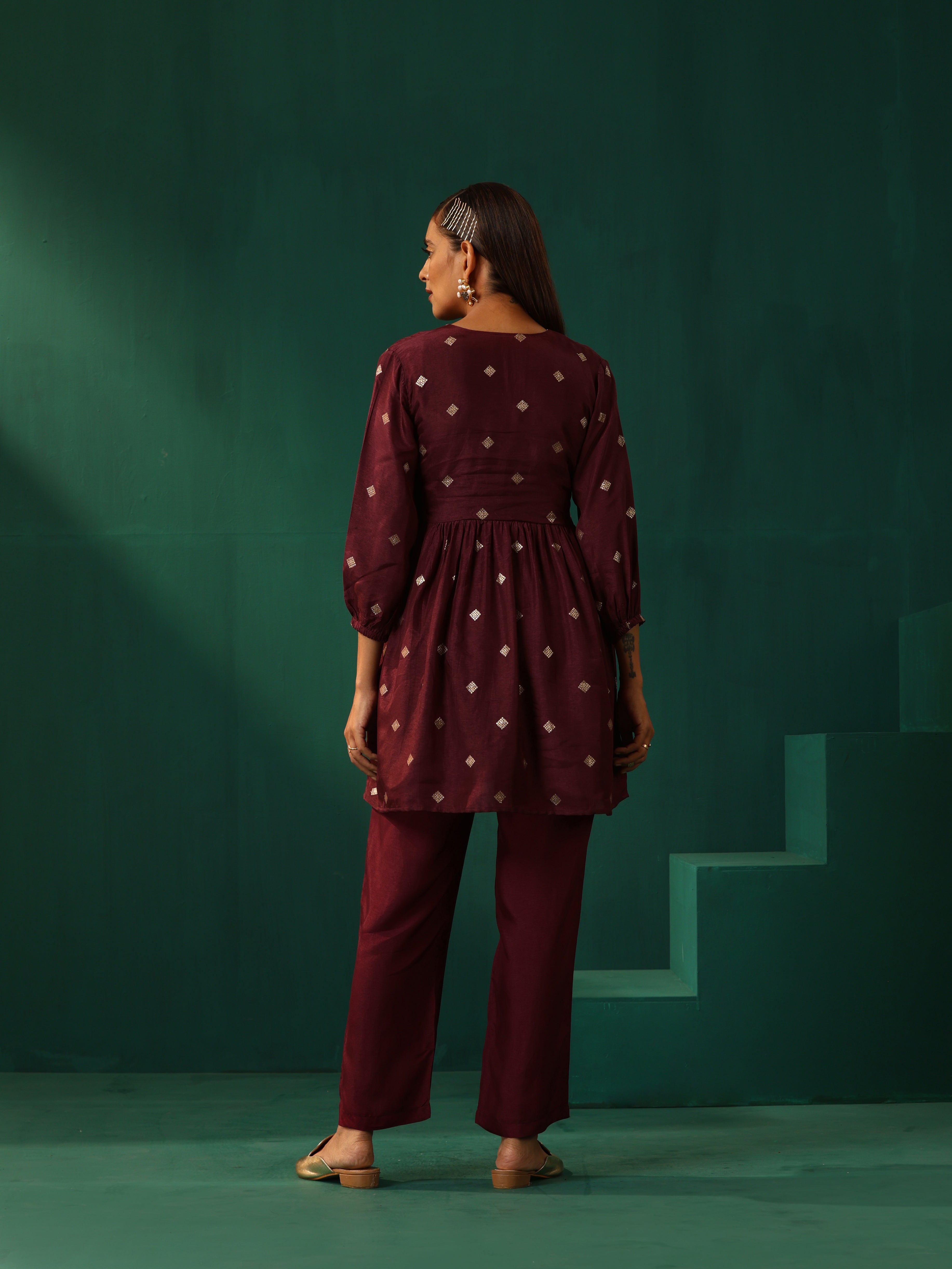 trueBrowns Wine Diamond Viscose Silk Waist Gathered Co-ord Set