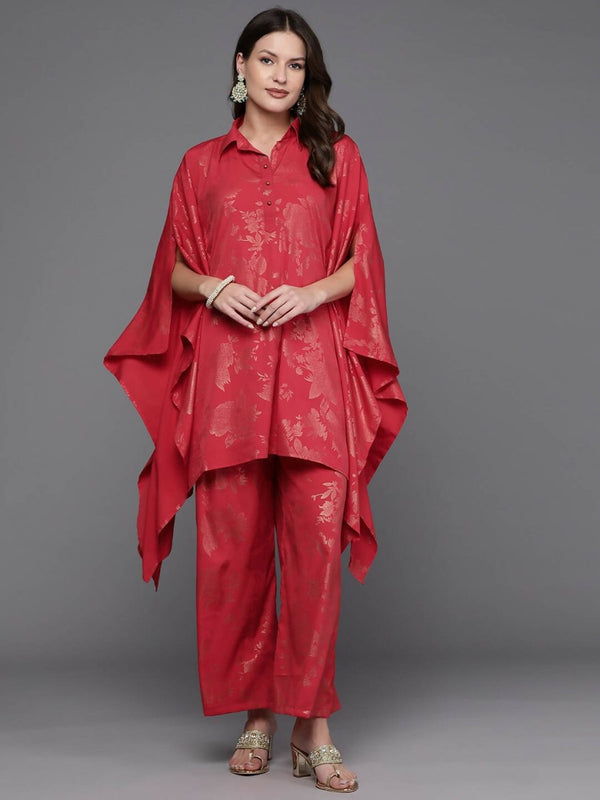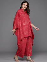 Ahalyaa Women Floral Printed Tunic with Palazzos - Red Color - XS