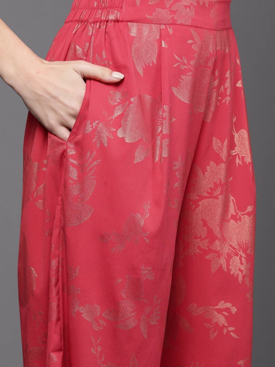 Ahalyaa Women Floral Printed Tunic with Palazzos - Red Color Age Group: Adults-Women Prominent Colour: Red Second Prominent Colour: Gold Fashio...