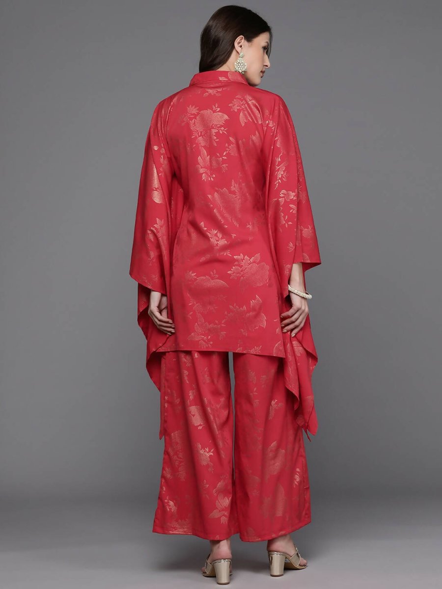 Ahalyaa Women Floral Printed Tunic with Palazzos - Red Color