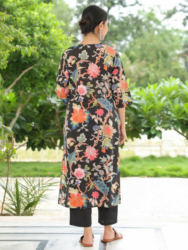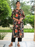 Aramya Straight Soft Cotton Floral Print Women's Kurta - Black - M