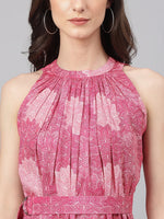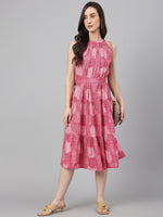 Janasya Women's Pink Crepe Digital Printed Tiered Western Dress - S