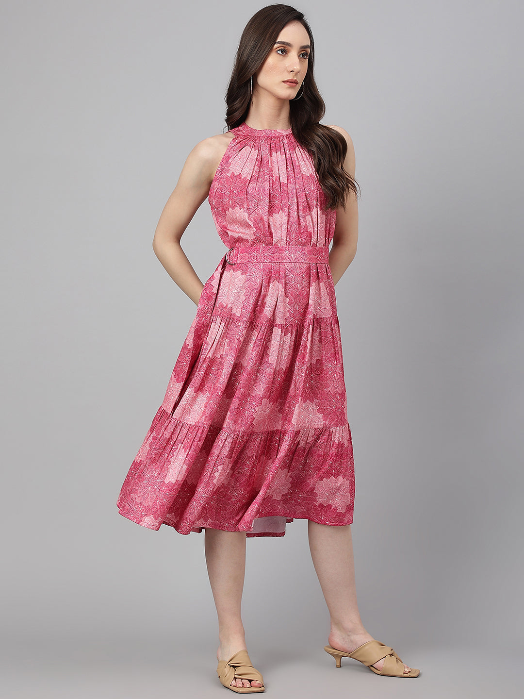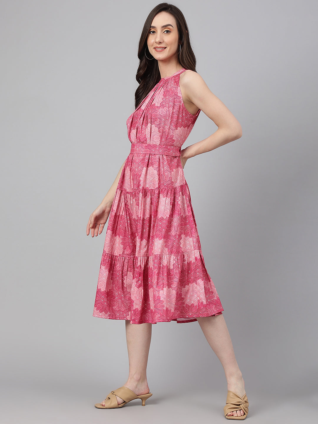 Janasya Women's Pink Crepe Digital Printed Tiered Western Dress Color: Pink Fabric: Crepe Pattern: Digital Printed Occasion: Casual Style...