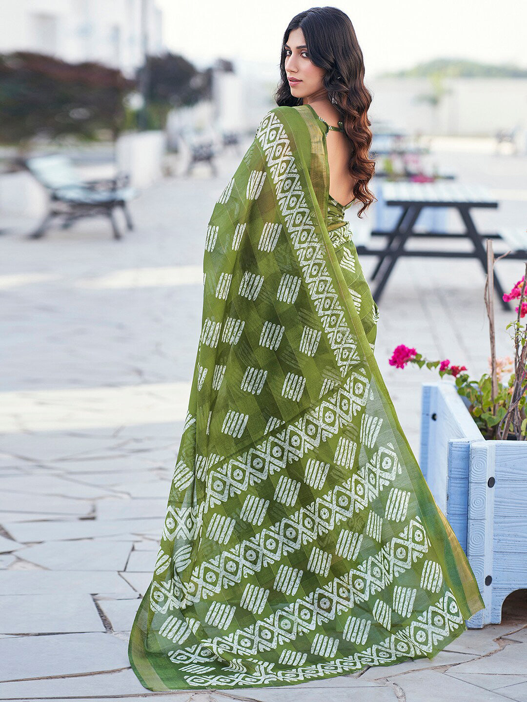 Kalini Batik Printed Bagh Sarees Product Details Design Details Green bagh saree Batik printed saree with no border The saree comes with an u...