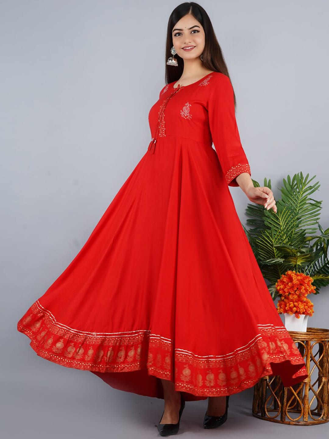 Kalini Women Red Ethnic Motifs Embroidered Keyhole Neck Anarkali Kurta Product Details Colour: red Ethnic motifs embroidered Keyhole neck Three...