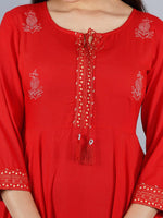 Kalini Women Red Ethnic Motifs Embroidered Keyhole Neck Anarkali Kurta - S