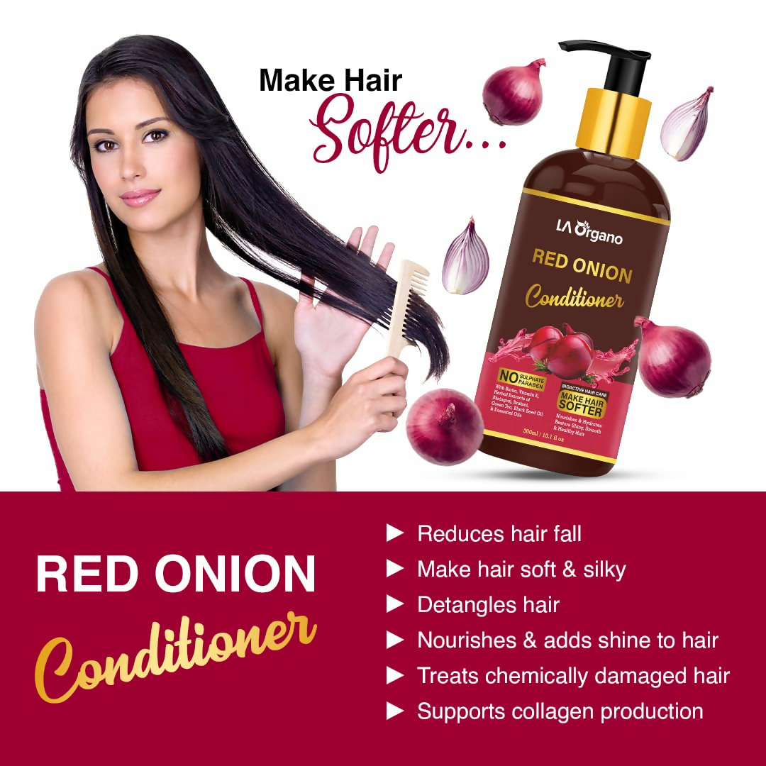 LA Organo Red Onion Hair Conditioner About the Product:Say goodbye to hair fall and make way for soft and smooth hair with LA Organo red onion blac...