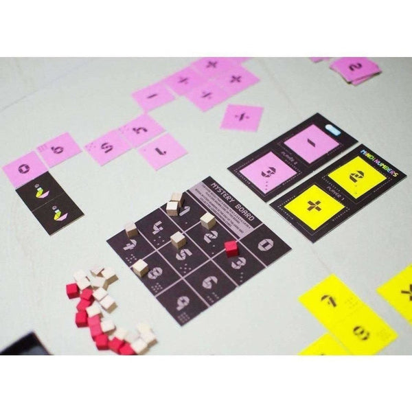 Using Just 10 Numbers And 12 Symbols, Players Compete For 9 Rounds To Earn Points With Higher Results. Planning When To Use Which Number & Symbol Combination Holds The Key To Winning. The Combination Changes Every Time You Play Due To 2 Randomly Chosen Mystery Numbers That Are Hidden From Opponents & Award Bonus Points In The End