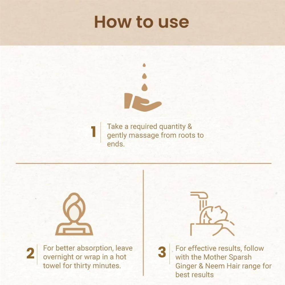 For effective results, follow with the Mother Sparsh Ginger & Neem Hair range for best results or as directed by the physician.