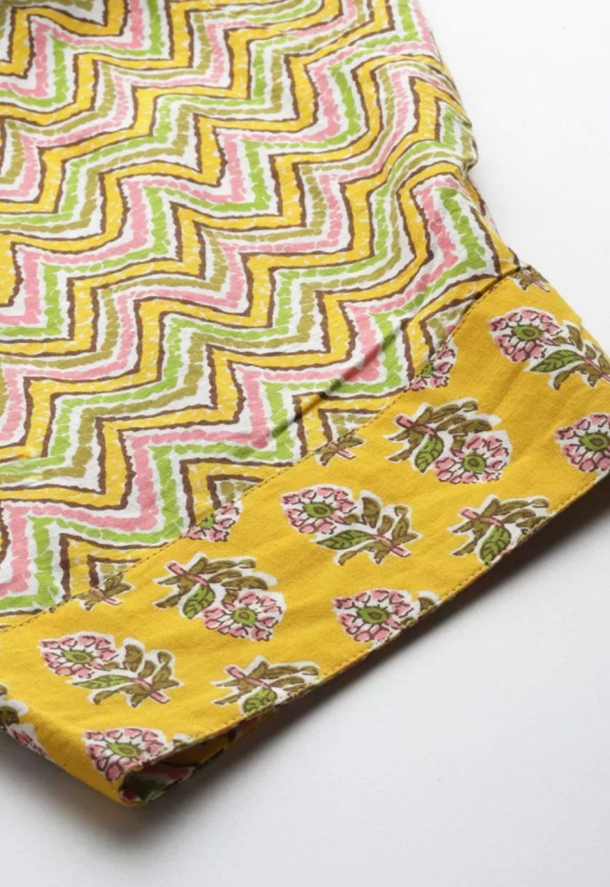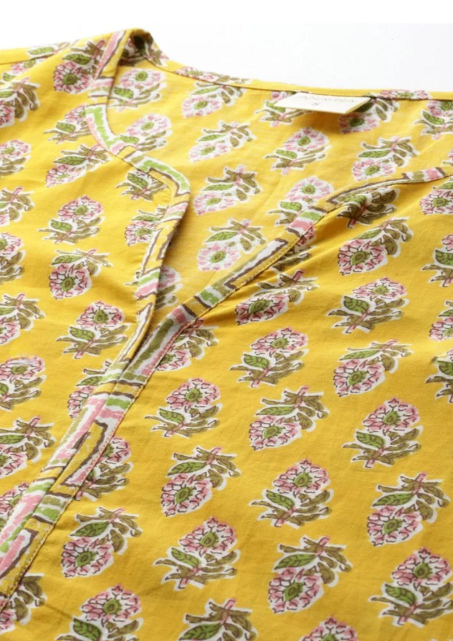 NOZ2TOZ Women's Floral Printed Knee Length Rayon Kurta And Pant Set With Printed Dupatta - Yellow - Distacart