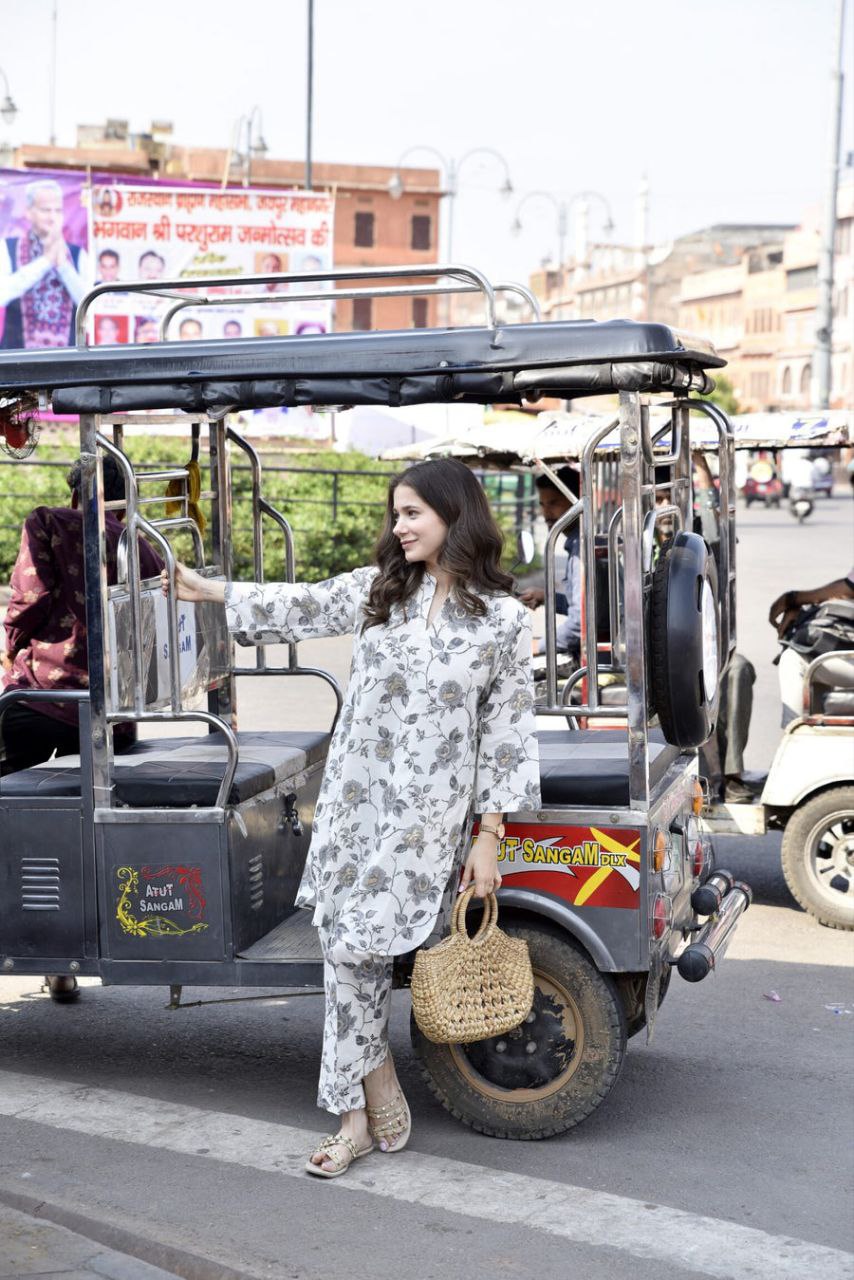 NOZ2TOZ Women's Floral Printed Knee Length V Neck Rayon Kurti And Pant Set - WhiteCare Instructions: Regular Machine Wash. Fit Type: Straight. Kurt...
