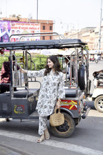 NOZ2TOZ Women's Floral Printed Knee Length V Neck Rayon Kurti And Pant Set - White