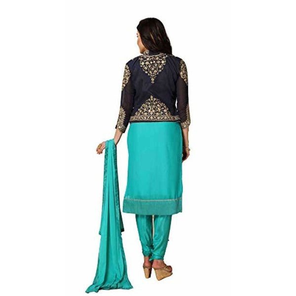 Salwar Suit Material (Turquoise) Top Fabric : Georgtte (0.70 Mtrs Width, Turquoise color) Bottom and Inner Fabric : Santoon (3.50 Mtrs, Turquo...