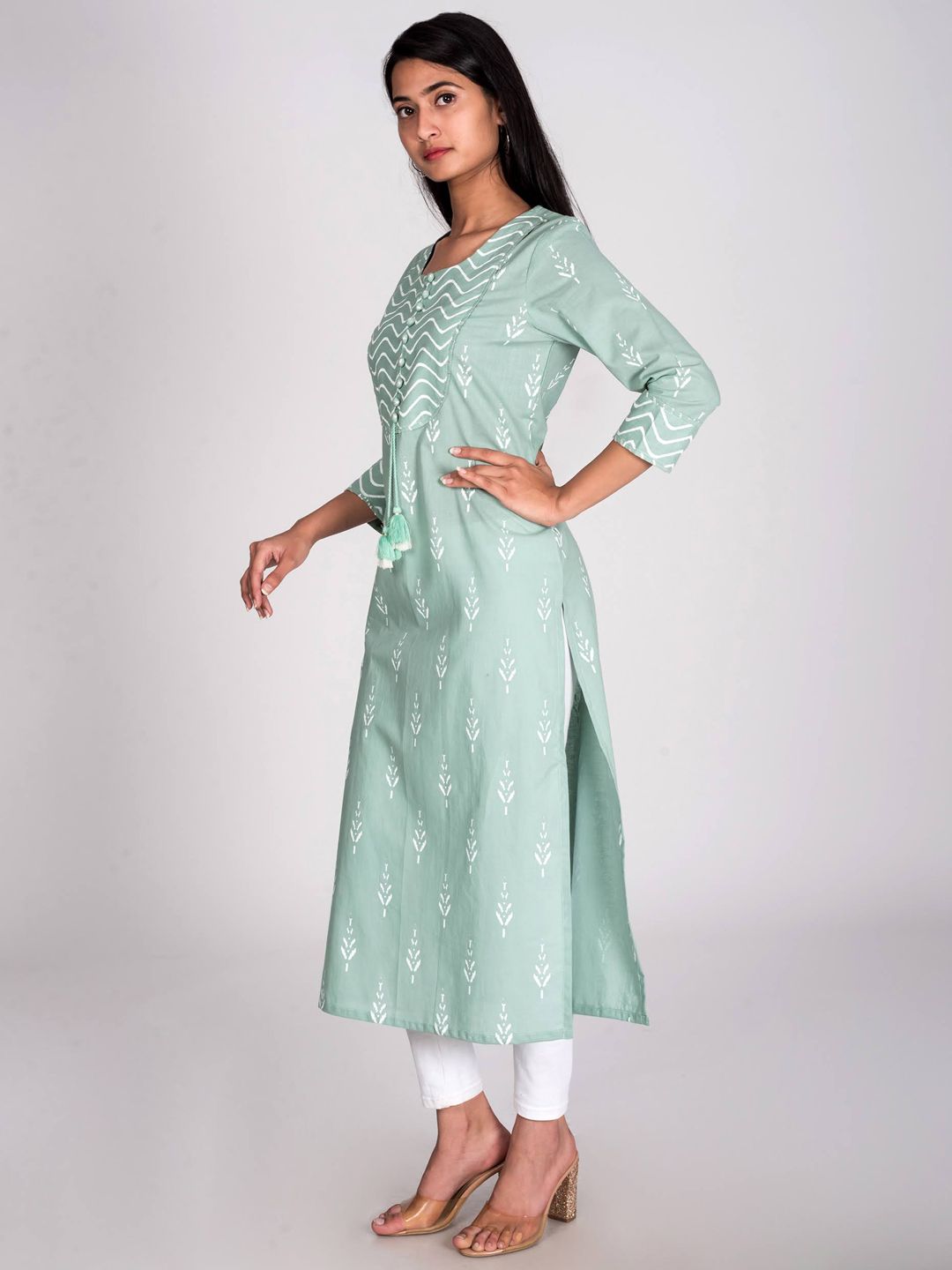 Swasti Women Green & jet stream Geometric Embellished Cold-Shoulder Sleeves Chikankari Floral Kurta Product Details Colour: green and jet...