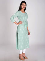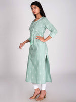 Swasti Women Green & jet stream Geometric Embellished Cold-Shoulder Sleeves Chikankari Floral Kurta - M