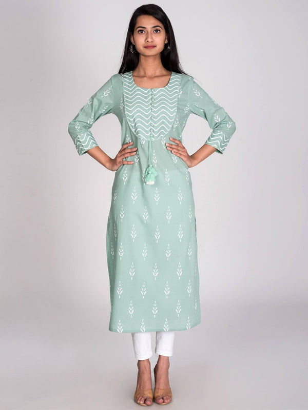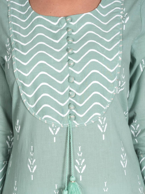 Swasti Women Green & jet stream Geometric Embellished Cold-Shoulder Sleeves Chikankari Floral Kurta
