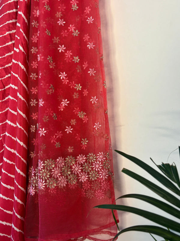 trueBrowns Pink Leheriya Saree Description Elevate your style with this timeless piece – the perfect combination of elegance and comfort. Fabricat...