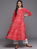 Varanga Red Printed A-Line Kurta With Three Quarter Sleeves - S