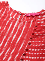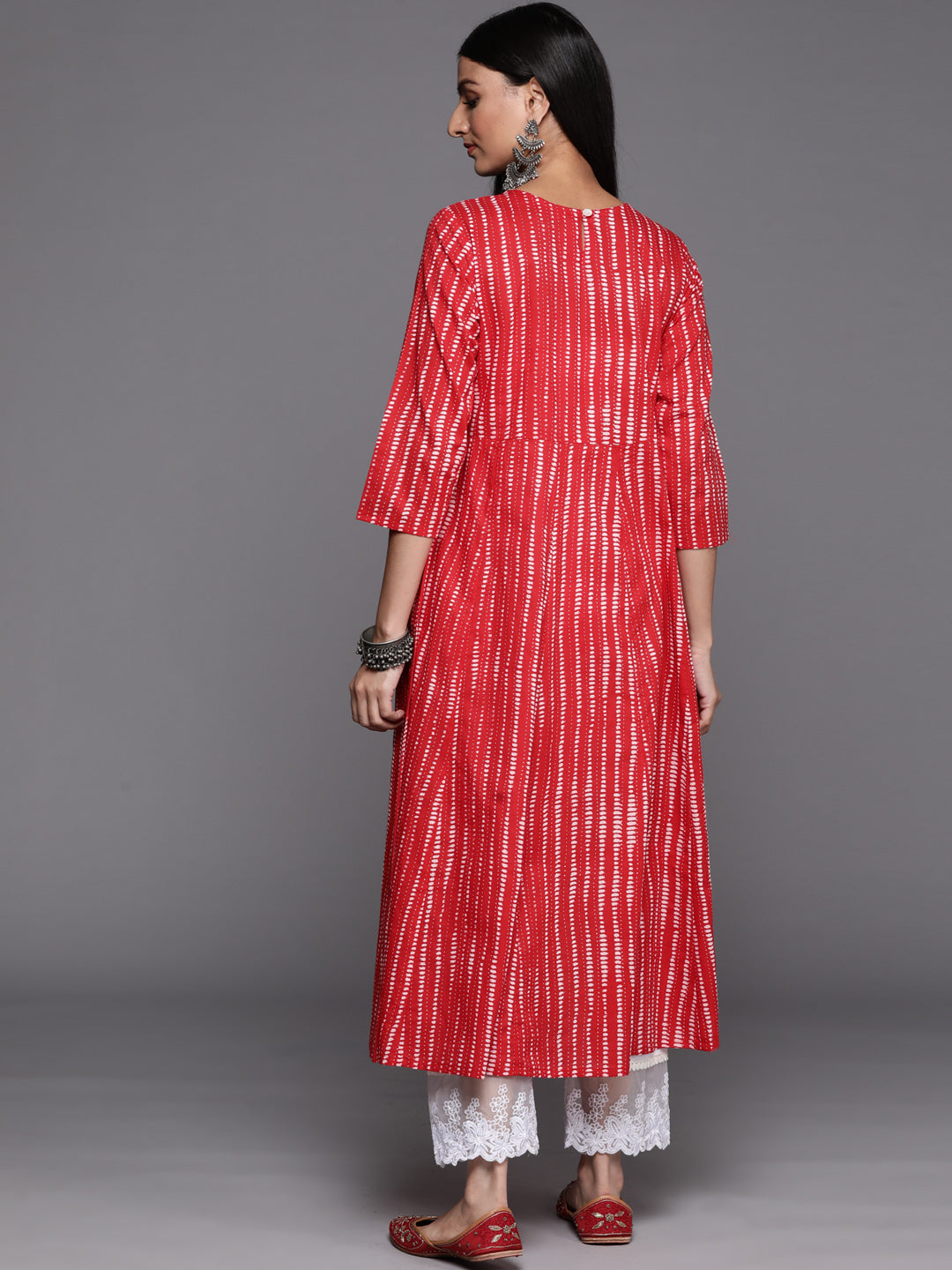 Varanga Red Printed A-Line Kurta With Three Quarter Sleeves