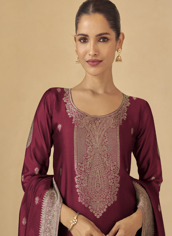 Vegaa Fashion Maroon Viscose Silk Jacquard Wedding Wear Salwar Suit