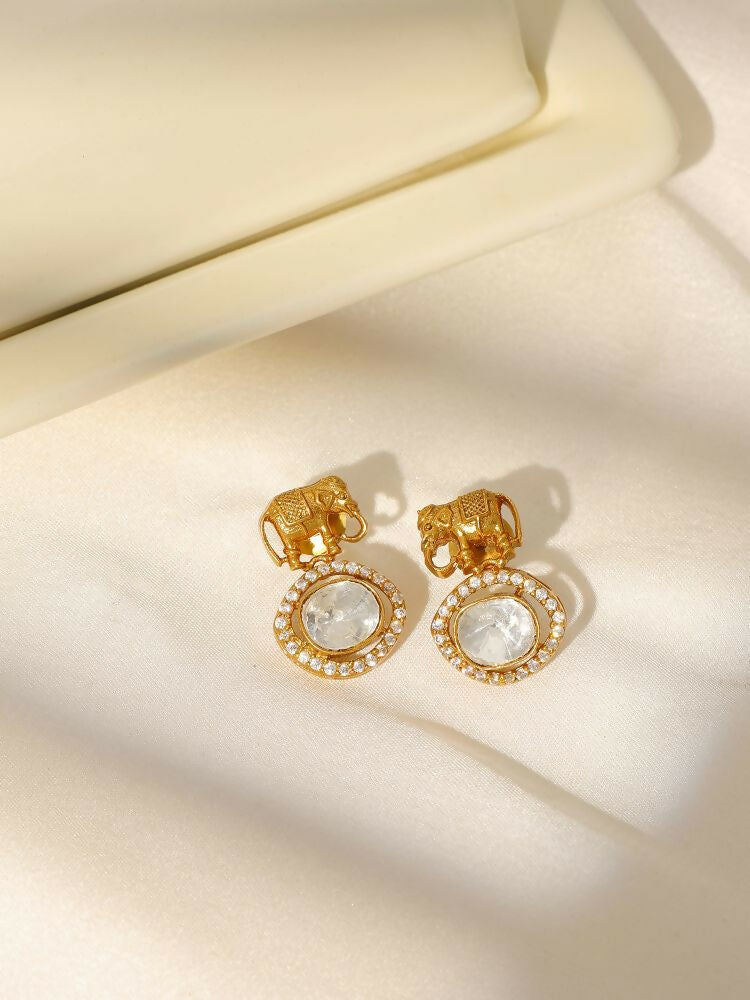 Elephant Studs with Kundan Drops - Ruby RaangAbout the ProductExperience the timeless elegance and captivating beauty of these handcrafted masterpi...