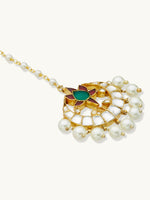Nuyug 22K Gold-Plated Green Stone & Kundan Studded with Pearl Drop Maang Tikka Head Jewellery