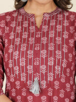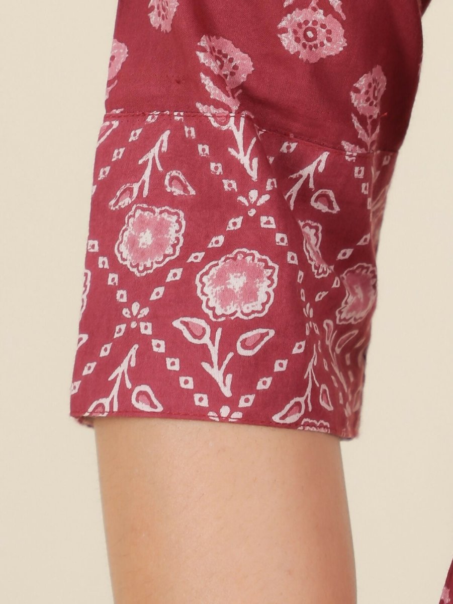 Aramya Straight Soft Cotton Block Print Women's Kurta - Pink