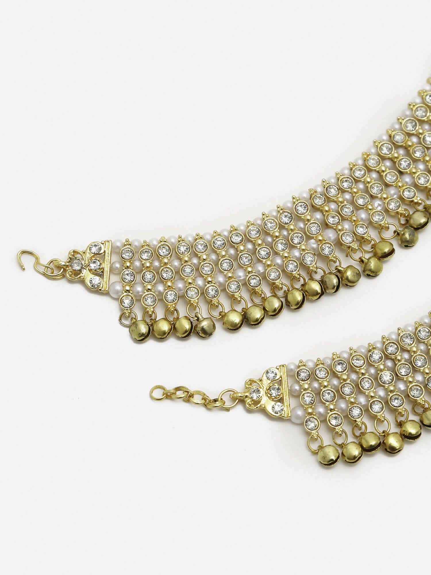 Women's Gold White Ghungroo Anklets - Ruby Raang