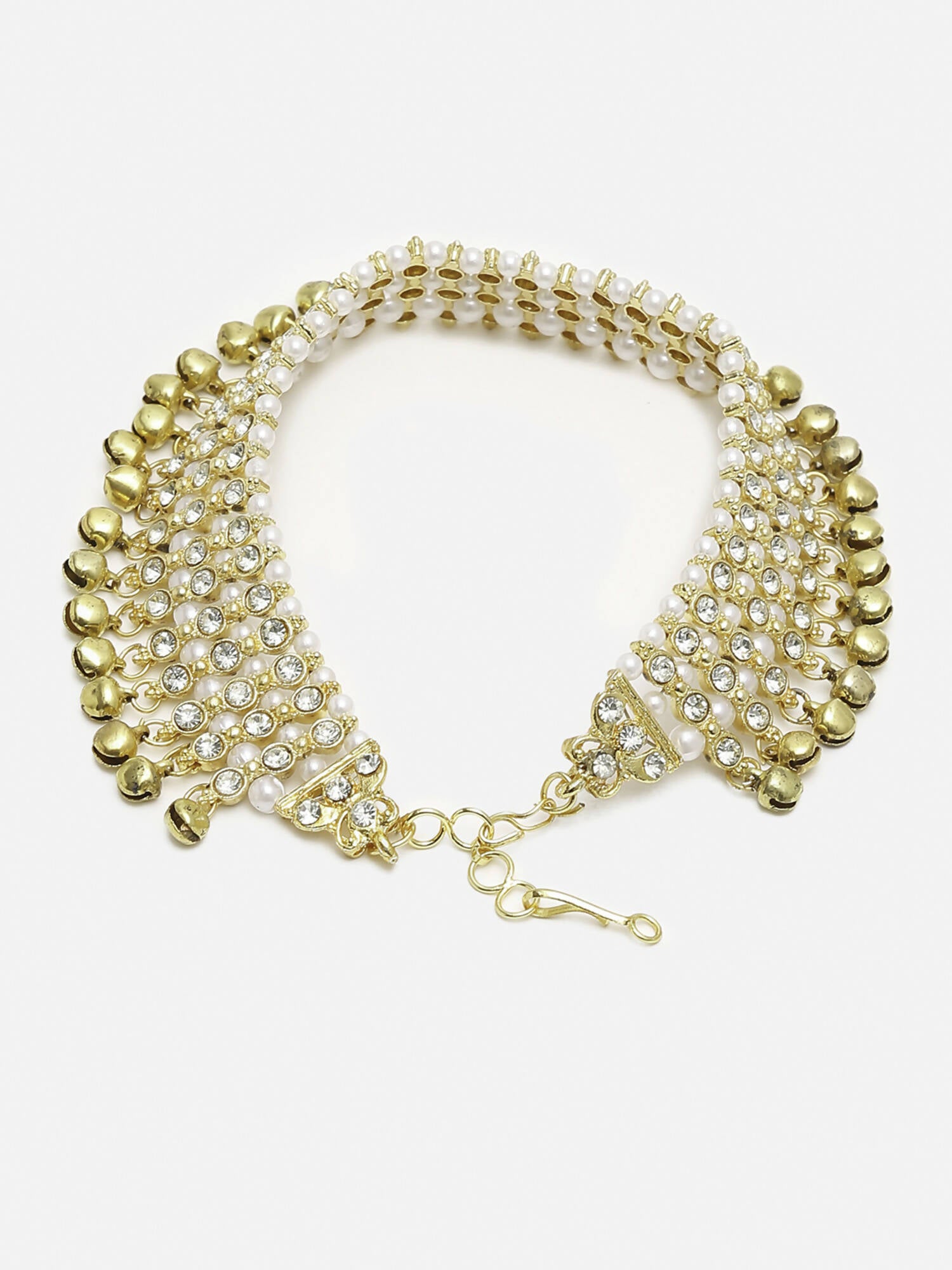 Women's Gold White Ghungroo Anklets - Ruby Raang About the product: Ruby raang pieces are exquisite and will make you stand out in the crowd, dazz...